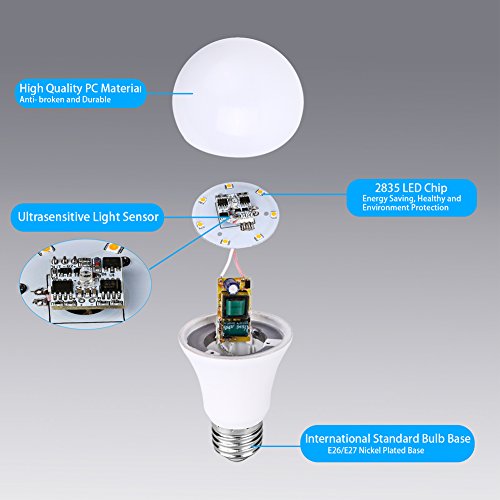 ☽ DUSK TO DAWN FEATURE: Built-in sensors that turn on the bulb automatically at dusk and turn it off when it's dawn. This eliminates the need to physically turn the bulb off and on.