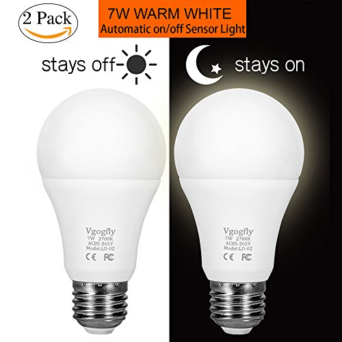Sensor Lights Bulb Dusk to Dawn LED Light Bulbs Smart Lighting Lamp 7W E26/E27 Automatic On/Off, Indoor / Outdoor Yard Porch Patio Garage Garden (Warm White, 2 pack)