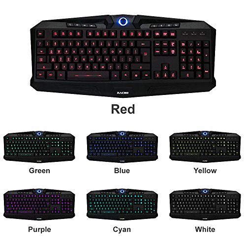 Zacro Backlit Wired Gaming Keyboard with Adjustable 7 Color Backlight LED Backlit, USB Wired Illuminated Computer Keyboard