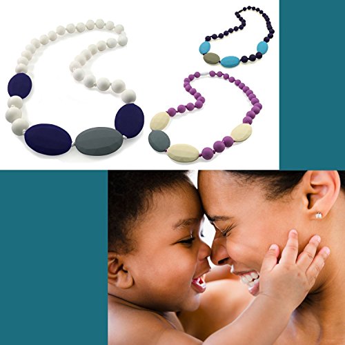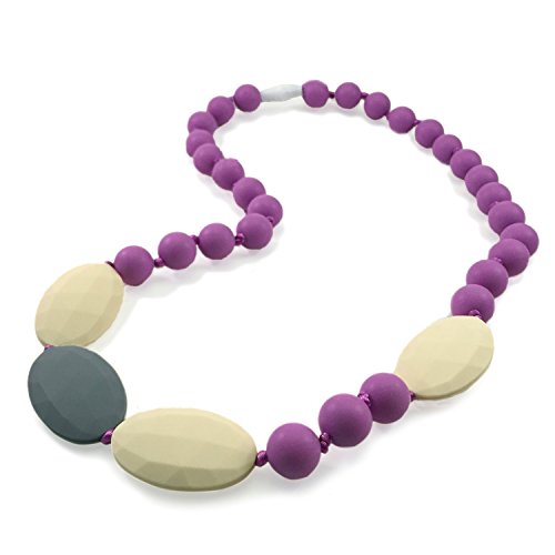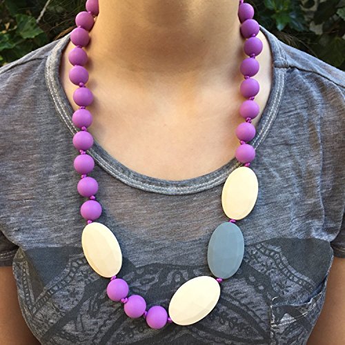 Teething Necklace for Mom to Wear - Baby Safe Silicone Teether 24 Inches Purple
