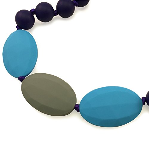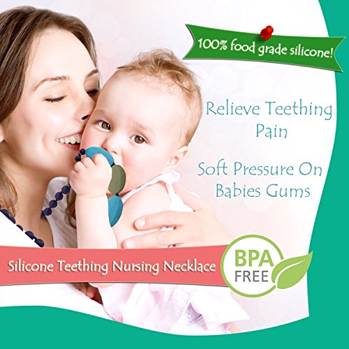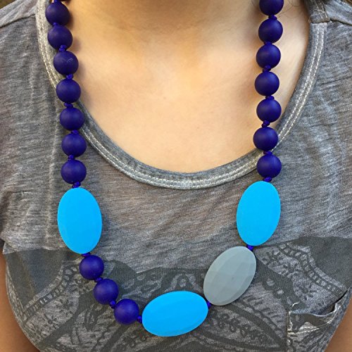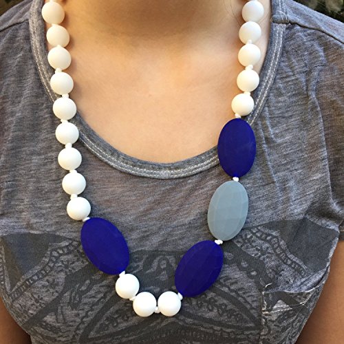 Teething Necklace for Mom to Wear - Baby Safe Silicone Teether 24 Inches Navy