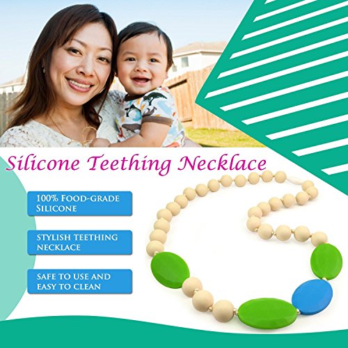 Teething Necklace for Mom to Wear - Baby Safe Silicone Teether 24 Inches Ivory