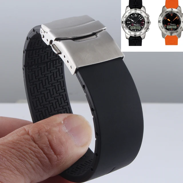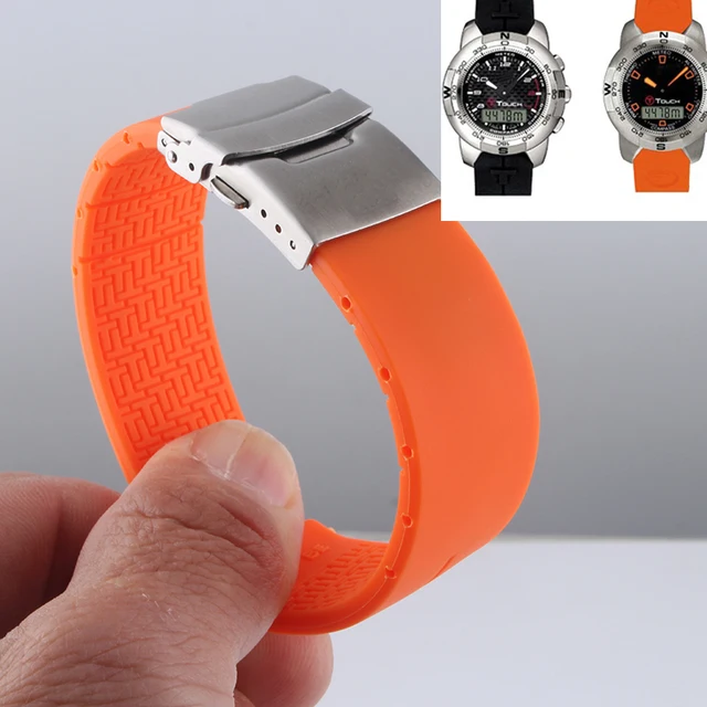 [해외] Breta 시계 실리콘 고무 스포츠 시계 액세서리 t 터치 t033 t047 스트랩 20 미리메터 21 미리메터 블랙 orange 나비 버클