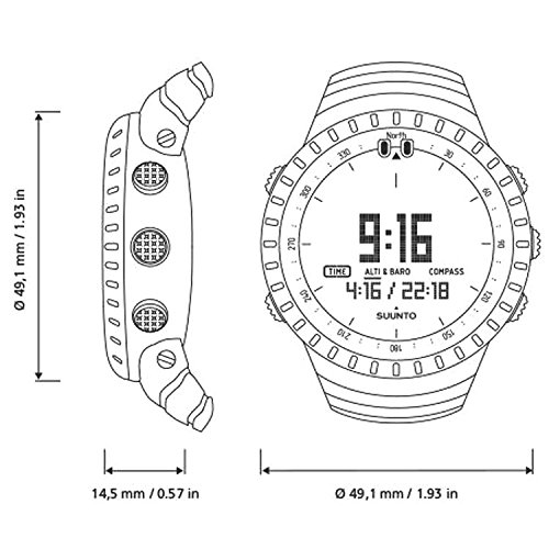 Suunto Core Classic Watches, the all-in-one outdoor sports instrument containing essential outdoor functions in a light plastic case. Suunto is a leading designer and manufacturer of sports precision instruments for diving, training, mountaineering, hiking, skiing, sailing and golf. Prized for their intuitive design, accuracy and dependability, their precise instruments combine the aesthetics and functionality of watches with sport-specific computers that help athletes at all levels analyze and improve their performance. Features include: Altimeter with altitude log memory and altitude difference measurement, Barometer with storm alarm and weather trend indicator, Automatic Alti/Baro switch, Compass with semi automatic calibration and a digital bearing, Depth meter, Multiple watch, date and alarm functions with dual time and countdown timer, Sunrise/Sunset times for over 400 locations worldwide, Digital thermometer, Menu based user interface in English, German, French and Spanish, Accessory straps, and User-replaceable battery.