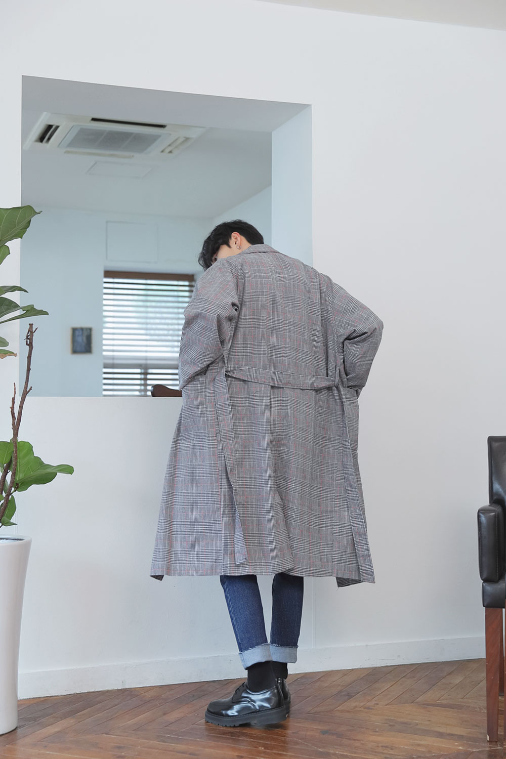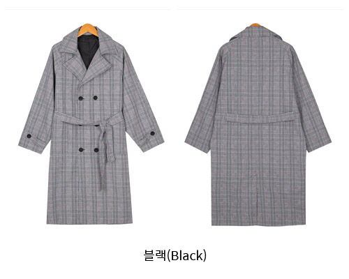 체크 루즈 트렌치 코트