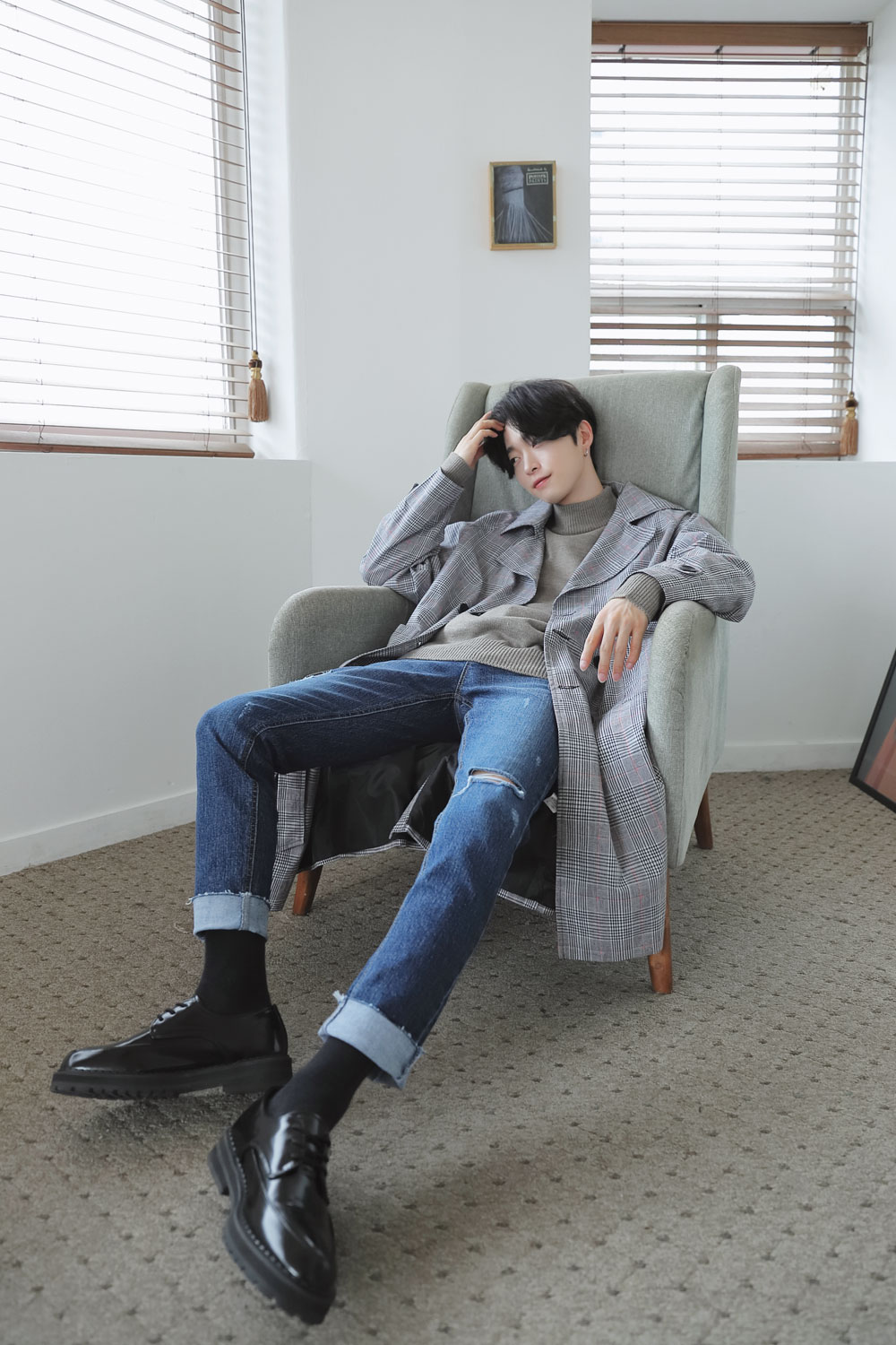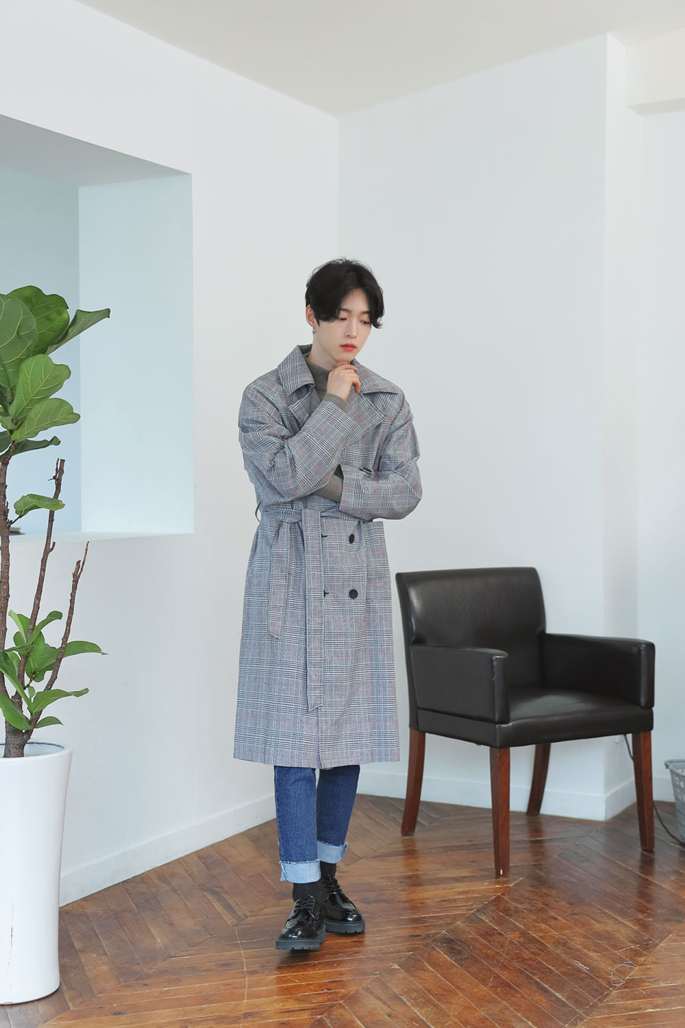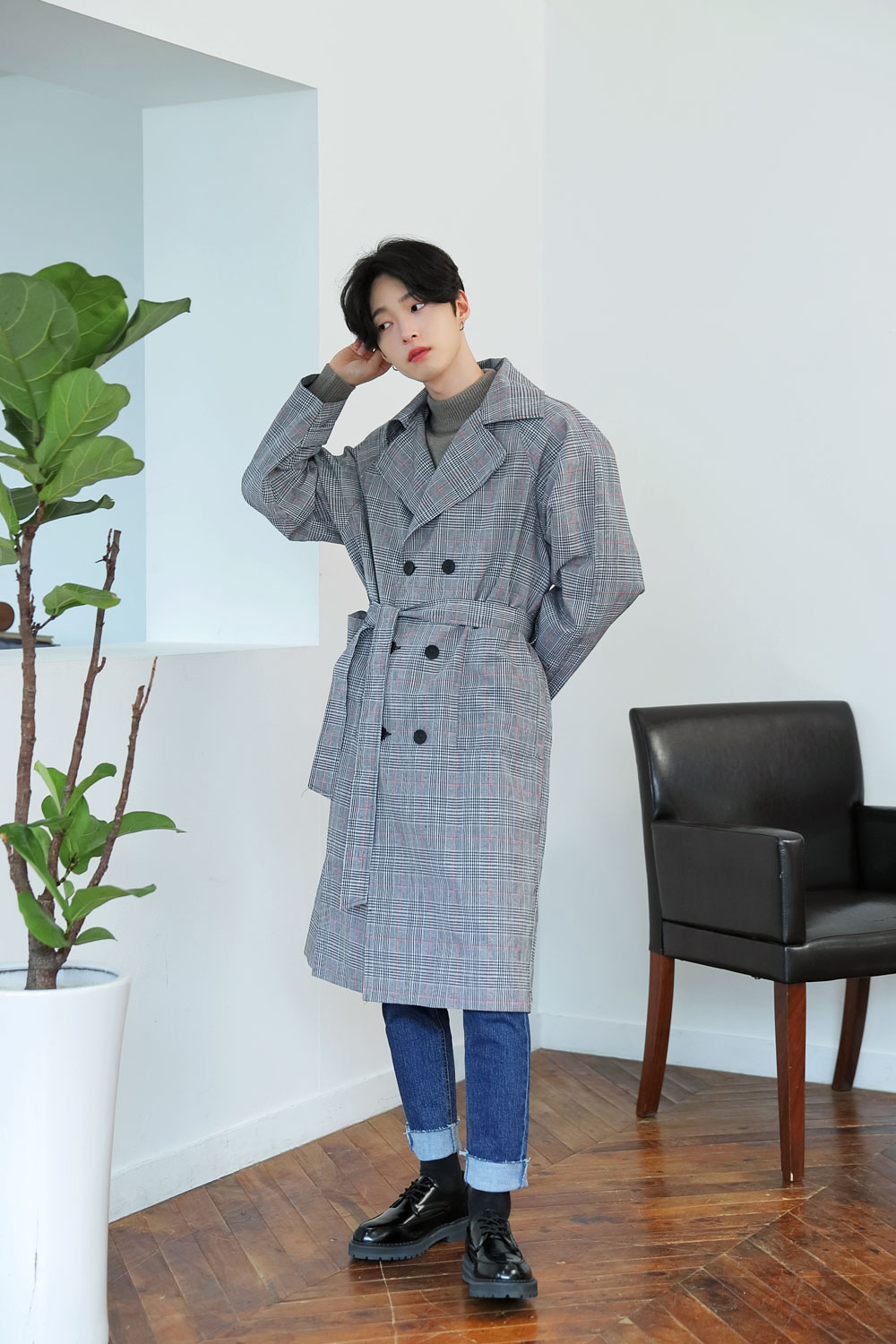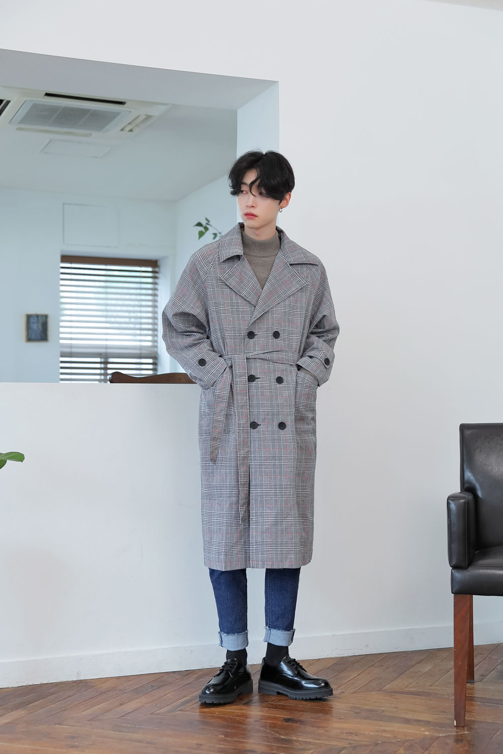 체크원단으로 제작된 가볍고 멋스러운 트렌치 코트 입니다.FABRIC INFO