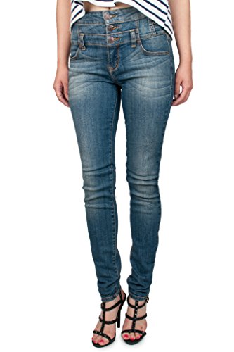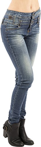 Binding : Apparel Product Description Let these be your new favorite, best fitting, and well constructed pair of jeans! These feel as close to jeggings while still being real denim. These jeans have Great Stretch that ensures a perfect fit, no matter your frame. Take the fear out of buying jeans online - buy jeans that are made to fit you instead of trying to find jeans that fit you. These High Waist Multi Button Skinny Jeans by Eunina Jeans have 3 button and zip fly closure in front with accent button detail on the sides, along with front and back pockets. Made of 98% Cotton and 2% Spandex, these jeans are extremely well constructed with durable stitching at the seams. 0