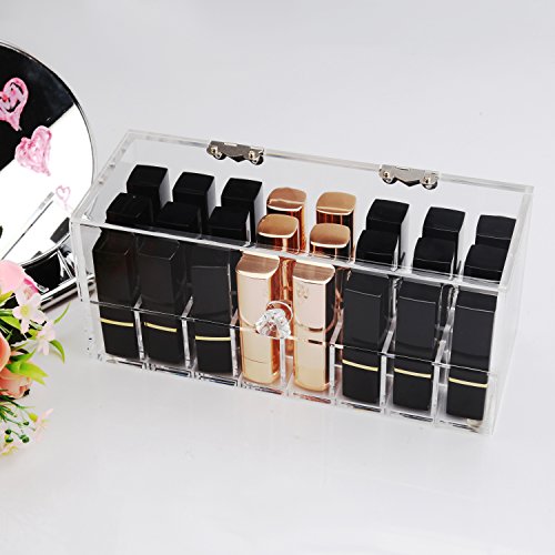 [MAKEUP or BEAUTY CARE ORGANIZER]-The box with 24 compartments is large enough to accommodate and display your mac lipsticks,nail polish and lipgloss or other jewelry,cosmetics,makeup,personal beauty care products.