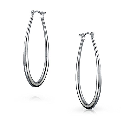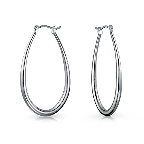 These long silver hoop earrings are timeless and elegant. Thin graduated oval hoops rest comfortably on the ear and never weigh you down. Sterling silver hoop earrings are incredibly versatile and these are no exception. A sterling silver jewelry must have, our casual earrings work from morning meeting to happy hour with the girls.Feature
