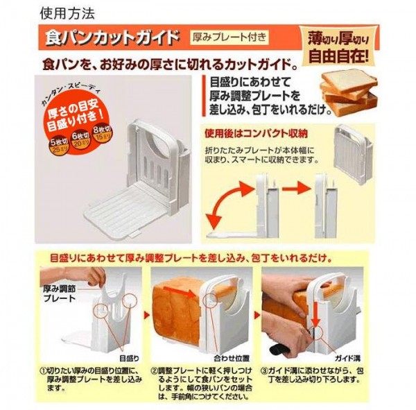 fk094igrjs背の高い大きめサイズの山型タイプの食パンも、お家でお好みの厚さにカットできる便利な商品です サイズ W16.9×D5.5×H22cm(収納時) 個装サイズ:18×6×23cm 重量 個装重量:345g 素材・材質 本体・プレート/ABS樹脂 包丁ガイド/ポリエチレン 仕様 食洗機・乾燥機:使用不可 製造国 中国 厚切り、薄切り、自由自在のパン切り名人 ・この商品は、ホームベーカリー用の大きめのパンのサイズに合わせています(大きさは最大で高さ約20cm、横幅約14cmまで) ・パン切り包丁の刃部の長さは約23cm以上のものが適しています ・食パンを5枚切(25mm)、6枚切(20mm)、8枚切(15mm)、12枚切(10mm)にカットできます ・収納時はコンパクトに折りたためます 背の高い大きめサイズの山型タイプの食パンも、お家でお好みの厚さにカットできる便利な商品です