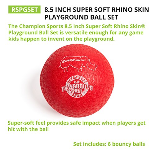 The Champion Sports 8.5-inch Super Soft Rhino Skin Playground Ball Set contains a six-pack of playground balls for toddlers and young kids. Made with a non-sting coating, this children's ball also has a soft inflatable foam core that is the softest and safest in the entire product line. This playground ball can be used indoors and outdoors and durable for long-lasting use. This set of six inflatable foam playground balls are the softest playground balls we make.Feature