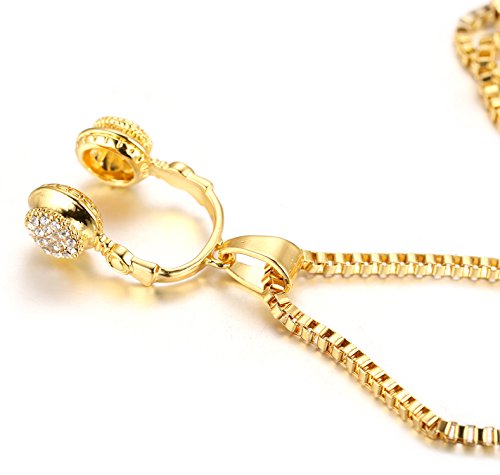 -. Title : Halukakah "LITTLE DJ"18k Real Gold Plated Dj Headphone Red Ruby Pendant Necklace with FREE Box Chain 30" Rope Chain 24"