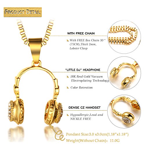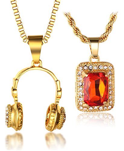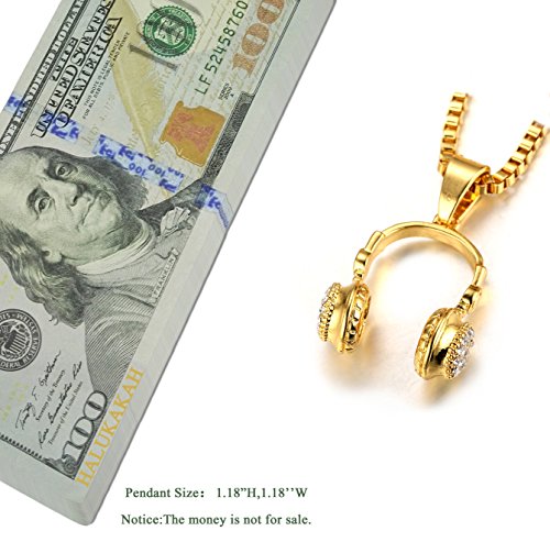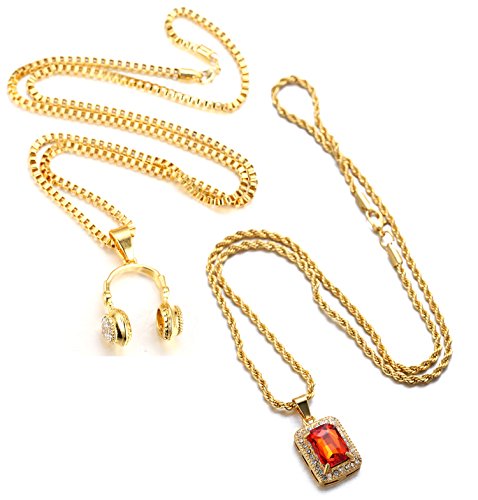 -. Feature : ? REAL GOLD PLATED - Thick 18k Real Gold Plated 3d Earphone and Red Ruby Pendant,Dense Cz Inlay / ? FREE CHAIN - With A Golden Box Chain About 30"(75cm)?Thick 2mm;With A Golden Rope Chain About 24"(60cm). / ? FACTORY DIRECT & REASONABLE PRICE - Product Contains:1x Earphone Pendant,1x Red Ruby Pendant,1x Golden Box Chain Necklace,1x Golden Rope Chain Necklace,1x Halukakah Gift Box / ? SPECIALLY DESIGNED GIFTBOX - Halukakah Giftbox are specially designed without Obvious Logo on the surface for we value our customers,the gift receivers,also our supporters' experience more than anything,Halukakah Giftbox makes gift giving more easily and help you store the jewelry better. / ? SAVE $3.00 NOW - SAVE $3.00 NOW when you spend $35.00 or more on All Products from Halukakah Brand.