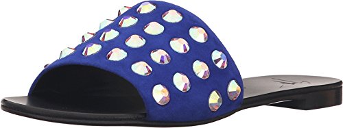 Studio : Giuseppe Zanotti Publisher : Giuseppe Zanotti Binding : Shoes Product Description Slide-on design. Open toe silhouette. Clear crystal hardware adorned across large center strap. Lightly padded leather footbed with embossed logo. Small square heel. Leather sole. Made in Italy. This item may ship with an attached security tag. Merchandise returned without the original security tag attached or a damaged tag may not qualify for a refund. 0