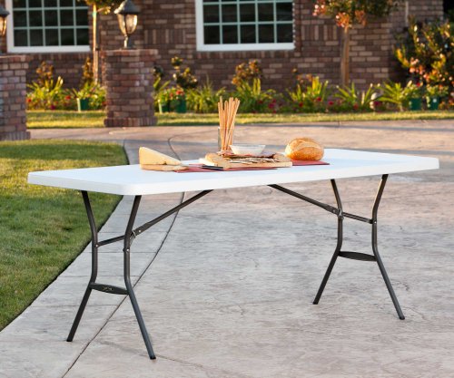 Lifetime 25011 Fold In Half Commercial Table, 6 Feet, White Granite
