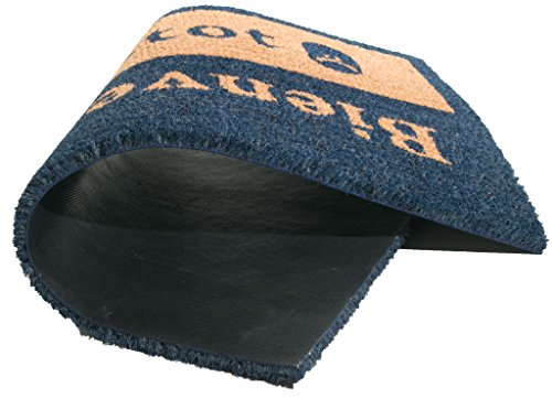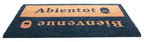 Bring a touch of france to your entrance by saying hello and good-bye in french to your guests. This high quality vinyl backed coir door mat from imports decor has the french words 'beinvenue-abientot' printed in dark blue on the front which means hello and good-bye in english. Imports decor constructs their doormats with the best quality coir naturally bleached with sea water. Coir is the natural fibre extracted from the husk of coconuts. Coir fibre is relatively waterproof, has superior scrubbing power and is resistent to the elements. The vinyl backing provides reinforcement and prevents the doormat from skidding. with a coir doormat from imports decor, you can feel confident dirt and debris will be left at the front door and not in your home. Item no.516pvcFeature