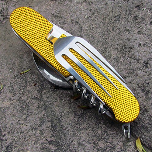 Domo 아웃도어 바베큐 쿠킹 용품 식기 세트 접는식 일점 세트 스포츠 여행 스푼+포크+나이프 캠프 노란색 휴대 편성