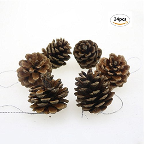 24pcs 3cm Christmas Pine Cones Pendant With String Natural Wood Christmas Tree Decoration Crafts Home Ornament