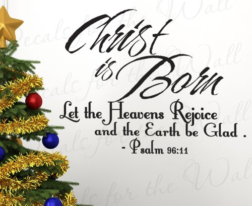 -. Feature : This decal says 'Christ is born let the heavens rejoice and the earth be glad. - Psalm 96:11' / Easy to apply and can be cleanly removed without damaging your walls. Instructions are included with your order. / Apply to walls, doors, windows, or any other smooth or semi-textured surface. / Premium exhibition-grade vinyl films by Oracal, an industry leader in vinyl manufacturing. / 100% Money-Back Guarantee! If your wall quote doesn't meet your expectations in any way, we'll happily send a replacement for free or refund the purchase price.