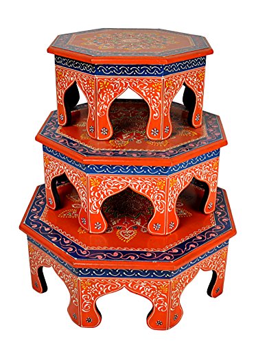 -. Brand : Lalhaveli -. Color : Orange -. EAN : 8907033272782 -. Feature : Nice choice for any occasion giftings , Hand painted & full color. / Speciality of Rajasthaani Handicrafts / Size: L 16 X 16 X 6 , M 14 X 14 X 6 , S 12 X 12 X 6 Inches / Material: Wood / Care Instructions : It can be easily maintained by dusting it with a soft cloth or brush. -. Label : Lal Haveli -. Manufacturer : Lal Haveli -. Model : HND01905 -. MPN : HND01905 -. PackageQuantity : 1 -. PartNumber : HND01905 -. ProductGroup : Furniture -. ProductTypeName : HOME_FURNITURE_AND_DECOR -. Publisher : Lal Haveli -. Size : Standard -. Studio : Lal Haveli -. Title : Wooden Furniture Set of 3 Nesting Tables