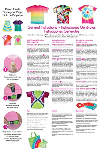 Protect work surface with plastic surface cover. Cover with a layer of paper towels. Prewash fabric to remove sizing; do not use fabric softener. Choose desired technique. If using wet technique, use directly from washer. If using dry technique, first dry fabric in dryer. Wearing plastic gloves from kit, add water to dye bottle(s), filling to line. Replace cap tightly. Shake until dye is dissolved. Use full-strength for intense colors. For a lighter shade of color, add more water using extra bottle if needed. Apply dye on fabric, checking to make sure dye has penetrated into folds. Do not over-saturate fabric. If dye is applied too close together, the colors may become muddy. Cover dyed fabric with plastic wrap to keep damp. Let set for 6-8 hours or longer for most intense colors. Fully rinse dyed fabric in warm water until all extra dye is removed and water runs clear - removing rubber bands if used. Fill washer to large load setting with hottest water suitable for the fabric and a small amount of laundry soap. Wash and dry separately. Wash separately for the first few washes. Do not allow dyed fabric to rest wet on other items.