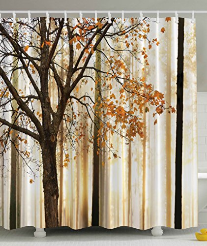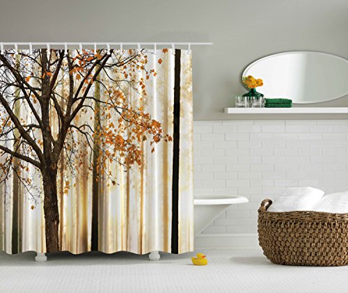 Shower Curtain Fall Trees Print Mom Gift Ideas Polyester Fabric Hooks Included, Orange Ivory Brown Beige