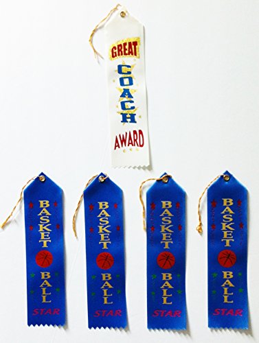 Bundle of 5 Award Ribbons: 4 "Basketball Star" and 1 "Great Coach Award"