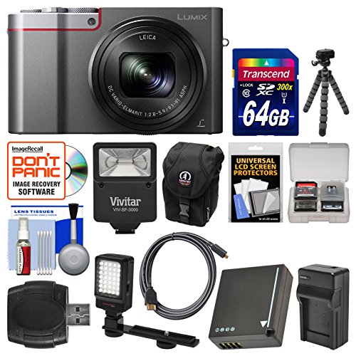 -. Title : Panasonic Lumix DMC-ZS100 4K Wi-Fi Digital Camera (Silver) with 64GB Card + Battery & Charger + Case + Flash + LED Light & Bracket + Flex Tripod Kit