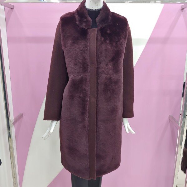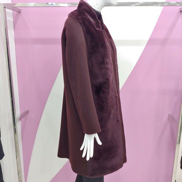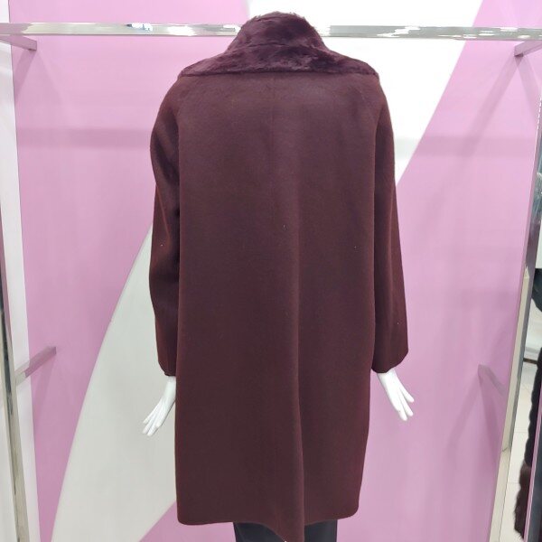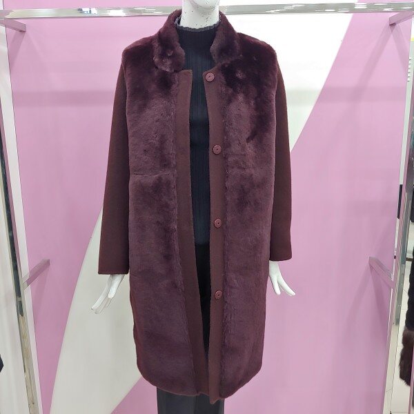 신상제품으로 앞면과 넥부분에 양털로 포인트를 준 롱 기장의 울알파카 코트.착용 시 더욱더 멋스럽게 표현되는 코트.