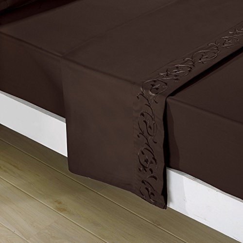 Hotel Elegant 2800 Series Microfiber Wrinkle,Fade Resistant Egyptian Cotton Quality Ultra Soft Chocolate 4-Piece Bed Sheet Set Twin (Scroll)