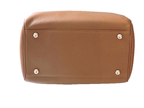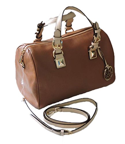 -. Brand : -. Color : Lage Brown -. Department : womens -. EAN : 0889154009721 -. Feature : Beautifully tanned lage brown pebbled leather with golden hardware / Lined interior with zippered pocket and 4 open slip pockets / Zippered top closure; removable removable circular logo hang charm / Dual buckled top leather handles with pyramid stud detail have a drop of about 5" / Measures approximately 11.5" (L) x 8.5" (H) x 6.5" (W) -. Model : 35S5GGYS2L -. ProductGroup : Shoes -. ProductTypeName : HANDBAG -. Size : Medium -. Title : Grayson Medium Satchel Brown Leather -. UPC : 889154009721