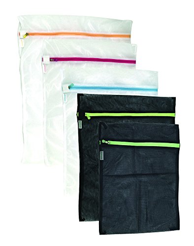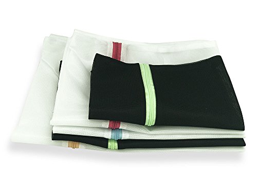 PAIRFORMANCE Premium Safe Mesh Laundry Bags Set of 5 White/Black Multicolor Zippers: 1 Extra Large, 3 Large, 1 Medium, for Pants,Shoes,Blouses,Underwear,Hosiery, Stockings,Packing,Traveling,Delicates,