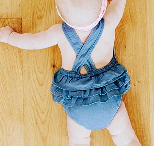 -. Feature : Material: Cotton blend / soft material, comfortable feeling for newborn baby / Baby Girls Denim Ruffle Style Belt Romper Playsuit, very cute and nice / Perfect for summer wearing, hand washing preferred / Your sweet heart will enjoy the superb smooth fit and exceptional comfort, for most studio classes, sports and dress up.
