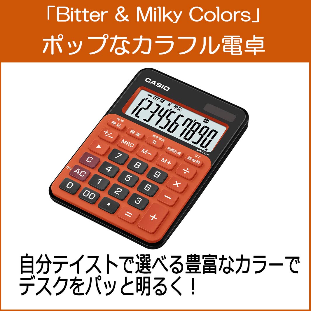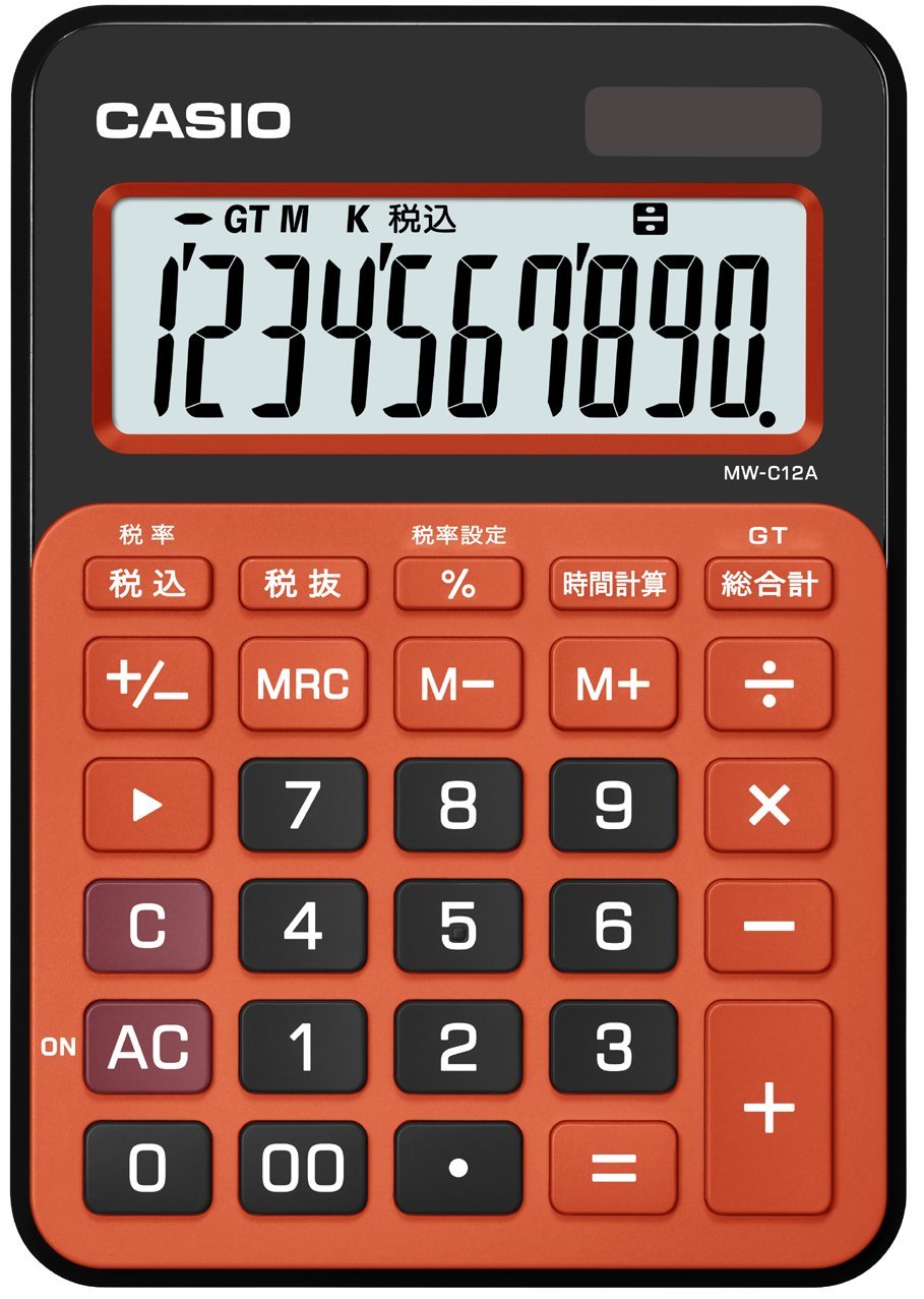 色:ビターオレンジ ●桁数: 10 ●メモリー:2 ●電源種類:T・W・P(太陽電池と補助電池の併用)(LR44) ●電池数:1 ●電池寿命:約3年 ●大きさ(奥行×幅×高さ mm):149.5×104.5×22.1 ●質量(g):125 機能:税計算,計算状態表示,時間計算,マルチ%,四則定数計算,概数計算,桁下げ,(シフト),+/-(サインチェンジ),キーロールオーバー機能(早打ち機能),ツーゼロキー