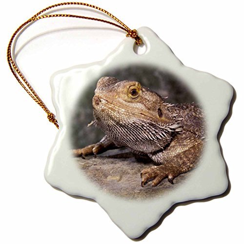 -. Title : Wild Bramble 3-Inch Porcelain Snowflake Decorative Hanging Ornament, Bearded Dragon Lizard Claudia Adams