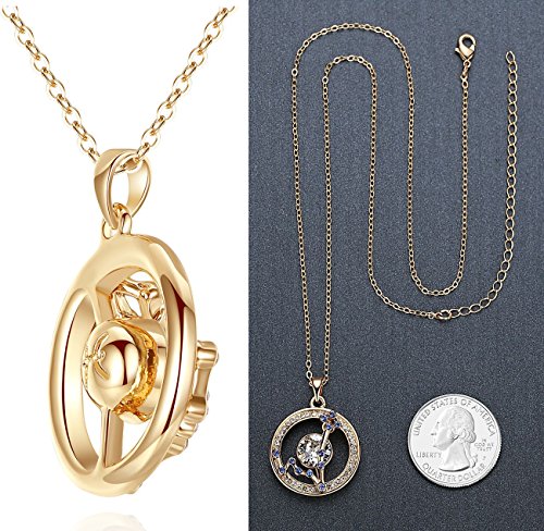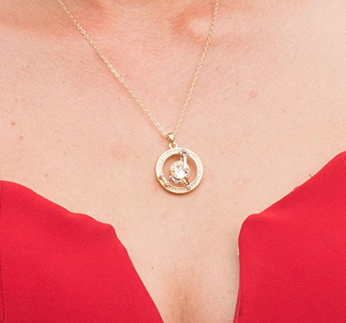 SPECIFICATIONS - 1) Pendant Size: 0.95" + 0.95", same size as a quarter 2) Stone: Swarovski Element Austrian Crystal Chaton Xilion Round Stone, Clear White; Swarovski Element Zirconia & Rhinestone, Purple Violet 3) Plating: 14K Gold Plated