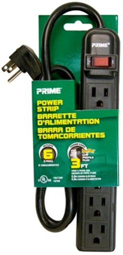 Prime Wire PB922009 6-Outlet Power Strip with Right Angle Plug and 14-3 SJT 3-Feet Cord