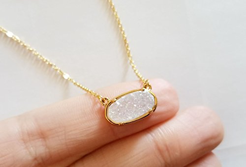 The ultimate gift for people with an appreciation for natural gemstones and things that sparkle! This gold plated oval drusy pendant necklace makes the perfect birthday, Christmas, anniversary, wedding, or 'just because' gift. Perfect for when you want to add a pop of color and sparkle to an outfit. Perfect for any occasion such as Casual Parties, Prom, Weddings, Anniversary, Musical plays and many more.