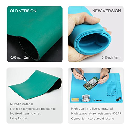- [ Non-toxic and Odorless ] The mat is made of high quality silicone. It resists corrosion and out of shape. Its texture is soft, solid and durable to protect soldering iron tip. It easily cleaned nice with soap and water or even rubbing alcohol in daily use. Mats environmental safety is conducive to improving the working environment of technicians.