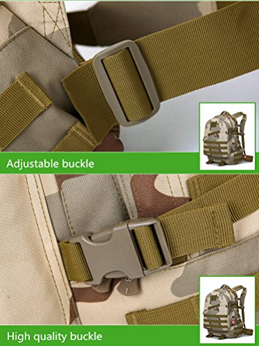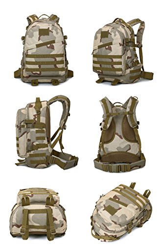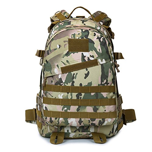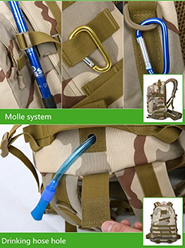 -. Feature : MATERIAL: 50L Capacity, Dimensions: 13.78"W x 17.72"H x 5.51"D. Made of Water-resistant 900D Oxford fabric, make the military backpack have strong Waterproof performance and Anti-scratch wear resistance.Good hardware,stronger zippers and buckles ,make it more durable and strengthen ,very comfortable to carry through trails and up and down mountains. / MOLLE SYSTEM: The molle straps are great for adding extra pouches.You can load smartphone pouch, water bottle bag, fanny pack/Waist Bag, Messenger Bag,accessory kits and others / HEADPHONE JACK: There is an earphone hole at the top of the bag, so you can enjoy your music with free hand! Or you can drink water by flexible pipe Stretched out from this hole, while cycling,hiking,camping,handy and convenient. / COMFORTABLE: Air cushion shoulder straps help relieve your shoulder stress.Adjustable shoulder length,free to adjust to ideal length.3D honeycomb breathable mesh and high elasticity noodles back cushion,relax the back pressure and impact force,promote the circulation of air,breathable and comfortable. / SUITABLE: Perfect for both daily and outdoor activities.Use it as a carry on for your excess baggage,perfect for day trips,vacation, travel,day hikes,school,camping and shopping.