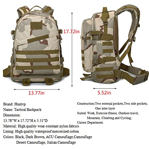 -. Title : Huntvp Tactical Molle Backpack/Military Rucksacks/Sports Outdoor Military Bag/Compact Pack/Summit Bag for Hunting Shooting Camping Hiking Trekking