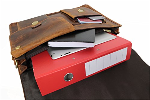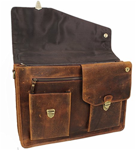 Features: Measurements: approx. 17.4 x 11.5 x 4.7 inch (perfect for up to 17 inch Notebook or A4-sized folders) Material: natural tanned waxed top-quality buffalo leather - two large compartments - two large zipped compartments for A4-sized documents - one additional compartment - two pen holders - three business card slots - big smartphone pocket - one large zipped pocket and 2 slide-in pockets on the front - one large zipped pocket on the back - Adjustable shoulder strap - up to 63 inch Save up to 50% off the suggested retail price! 0