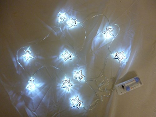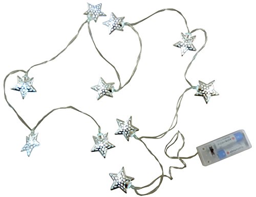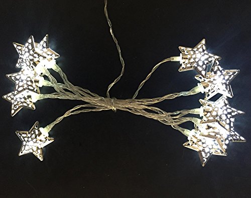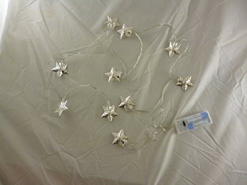 10 White LED Metal Silver Star Shaped Lights - Christmas Lights - Everyday Lights