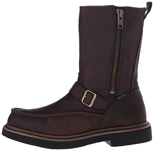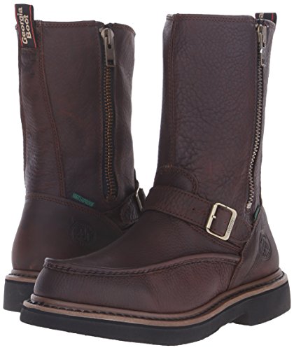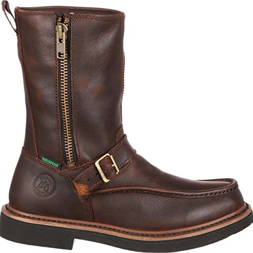 Studio : Georgia Boot Publisher : Georgia Boot Binding : Apparel Product Description Do you need quality boots look no further! Meet Georgia® side zip wellington waterproof work boots; the boots you need. These stylish, soggy copper kettle colored boots are sturdy, comfortable and reliable. Standing at 10 inches in height, with a 15-inch calf circumference, these men's work boots are waterproof, with waterproof lining, and Georgia® waterproof system, to ensure your feet will stay dry in the rain, snow, hail or mud. The zip up work boots also have and adjustable leather in-step strap to keep your feet firmly planted in the boot and a steel shank for arch support. Not enough comfort the waterproof work boots also have a removable polyurethane orthotic insert to make long days on your feet feel like a breeze. The brown work boots are made with goodyear® welt construction, and have a solid brass zipper, so they'll be sure to last long. The quality constructed work boot comes with a nylon pull loop and a proprietary oil resistant œx-10 ? outsole as well to help make sure these boots won't fall apart. So if you need new boots, get Georgia® side zip wellington waterproof work boots. 0