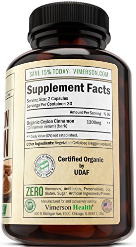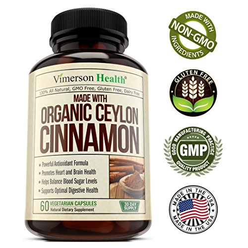 -. Feature : ★ SATISFACTION GUARANTEED: Look and feel your best or your money back! / ★ ORGANIC AND 100% NATURAL: Unlike other brands in the market, this cinnamon capsule is natural and organic, with no rice flour and no magnesium stearate. It contains pure and organic Ceylon cinnamon, known as the true cinnamon, which comes from the inner bark of a Sri Lankan evergreen tree. This unique advanced formula offers many more health benefits than the commonly used Cassia cinnamon. / ★ PROMOTES HEART AND BRAIN HEALTH: Vimerson Health Organic Ceylon Cinnamon helps promote cardiovascular health. It may aid in reducing cholesterol levels and supports well-balanced blood pressure and blood sugar levels in the body. Ceylon Cinnamon also supports healthy brain function through its neuro-protective proteins that shield brain cells from mutation and damage. / ★ POWERFUL ANTIOXIDANTS: Ceylon Cinnamon is packed with powerful antioxidants that may help reduce free radical damage and fight signs of aging. These vegetarian capsules boost one's overall health by enhancing the body's antioxidant capabilities. They also promote optimal digestive health and support the reduction of inflammation in the body. / ★ SAFE AND GENTLE INGREDIENT FORMULATION - This dietary supplement is formulated with only the safest and most gentle ingredients. It is 100% all natural, with no hormones, antibiotics, preservatives, soy, yeast, sugar, GMO, gluten, or dairy. Our supplement is certified Organic by UDAF.