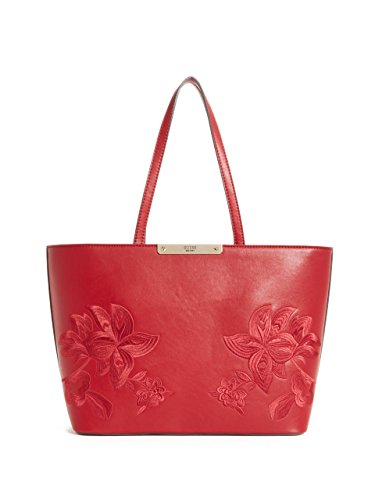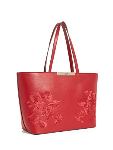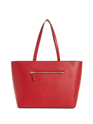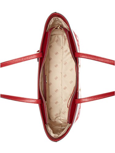 Complete your style with this smooth faux-leather tote, designed with polished hardware at the logo plaque and embroidery for a statement-making piece. Top zipper reveals logo-print interior with zip and multipurpose pockets.Feature