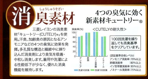 気になる臭いをカット!抗菌・消臭素材。三菱レイヨンの消臭素材「キュートリー」を使用。