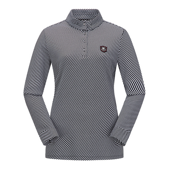 - 사선 스트라이프 패턴의 여성 티셔츠.