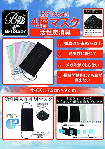 BFlower Four Layer Disposable Charcoal Activated Carbon Mask Filter - 20 Pieces (Each Piece Is Individually Packed) (Assorted)