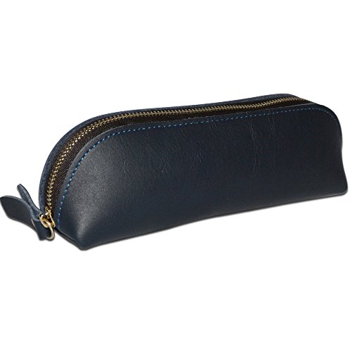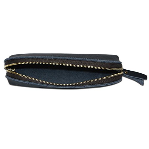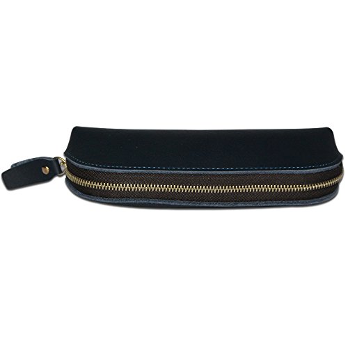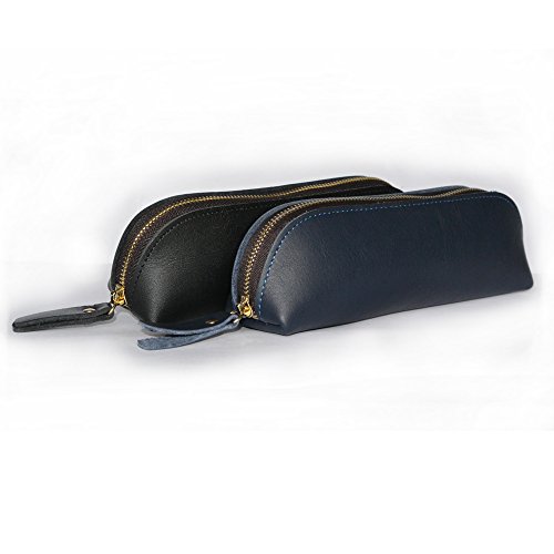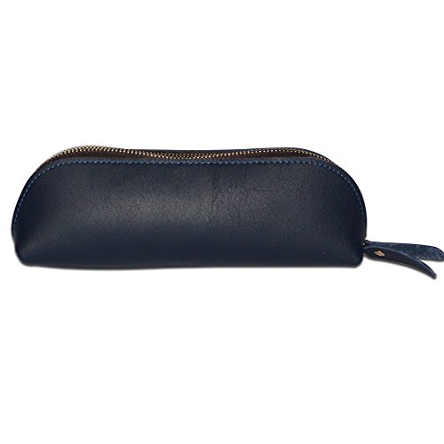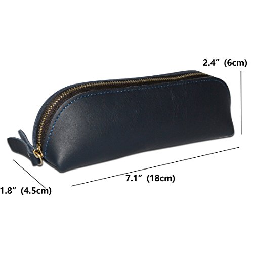 Handmade Vintage Genuine Leather Zipper Pen Pencil Pouch Case Holder Bag for Artists, Students or Business Professionals (Sapphire)